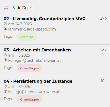 - Verwende vergangene Versionen, oder leite Templates für die Wiederverwendung in anderen Slidedecks ab